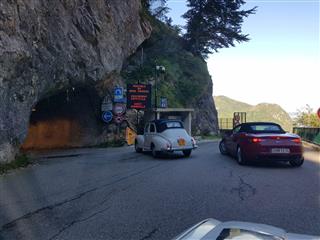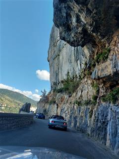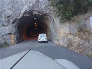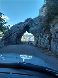 Suite à un copieux petit-déjeuner, la température étant de 9°, nous retrouvons nos voitures recouvertes d’une forte rosée. Sous un magnifique ciel bleu, et, des paysages grandioses, nous atteignons le rustique tunnel des « ECOUGES »
