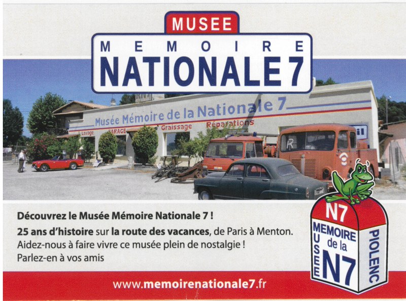 Le Musée Mémoire de la Nationale 7 est un petit musée situé à Piolenc, vers Orange (Vaucluse), au bord de la Nationale 7, et géré par des bénévoles. C'est l'histoire d'une période, celle des congés payés, jusqu'au développement de l'autoroute, des années 1950 à 1970.